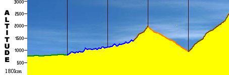 Légende: Vert = Plat --- Rouge = Pavé --- Marron = Montagne --- Orange = Descente --- Bleu = Vallon